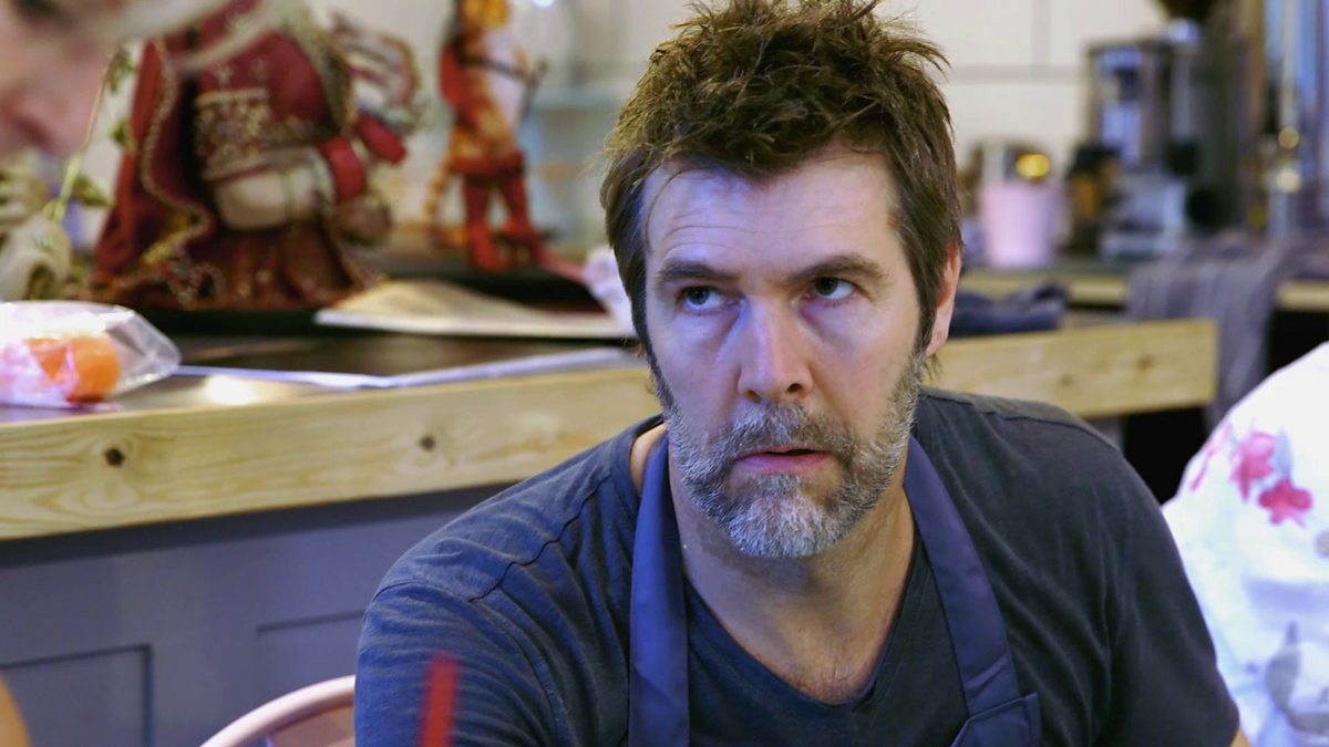 Rhod Gilbert attends a cake art class, adding the final touches to his cake boot.