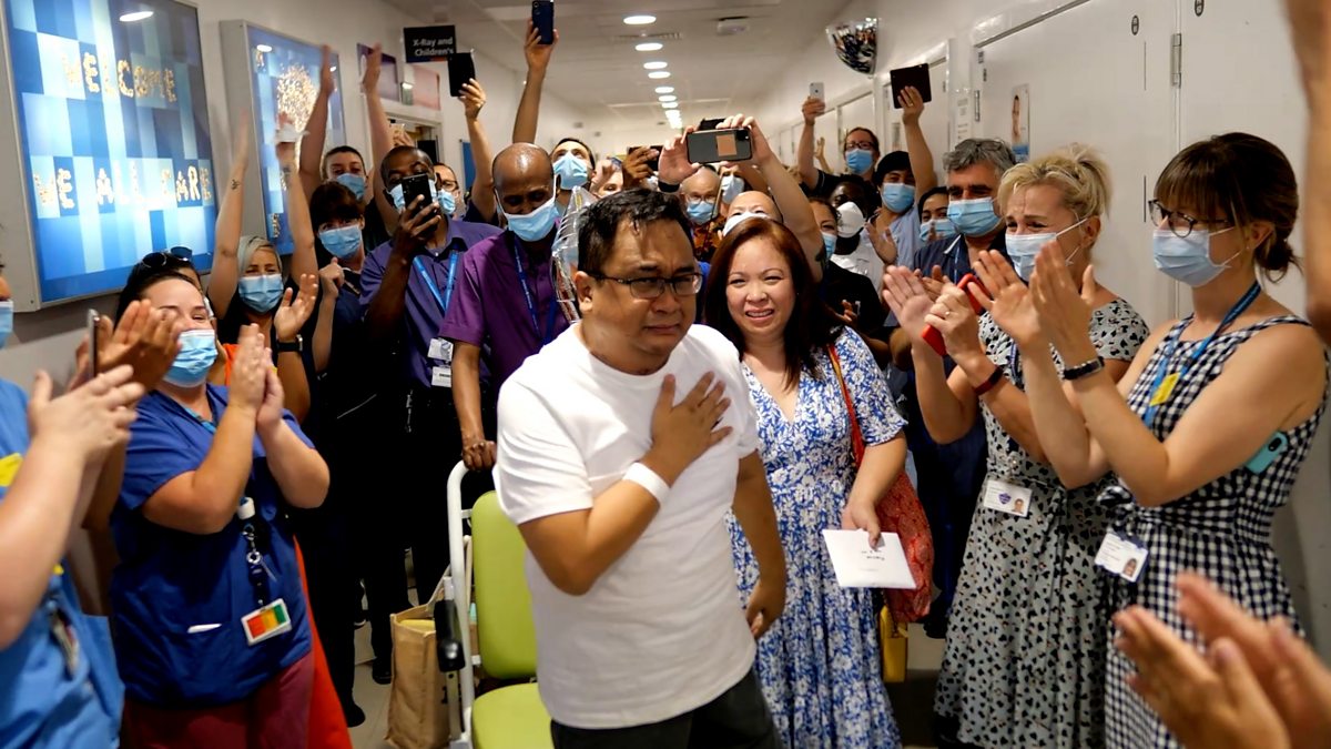 Watch the moment A&E nurse Franco Palo was given a standing ovation by his colleagues as he left hospital after a nine week battle with coronavirus.