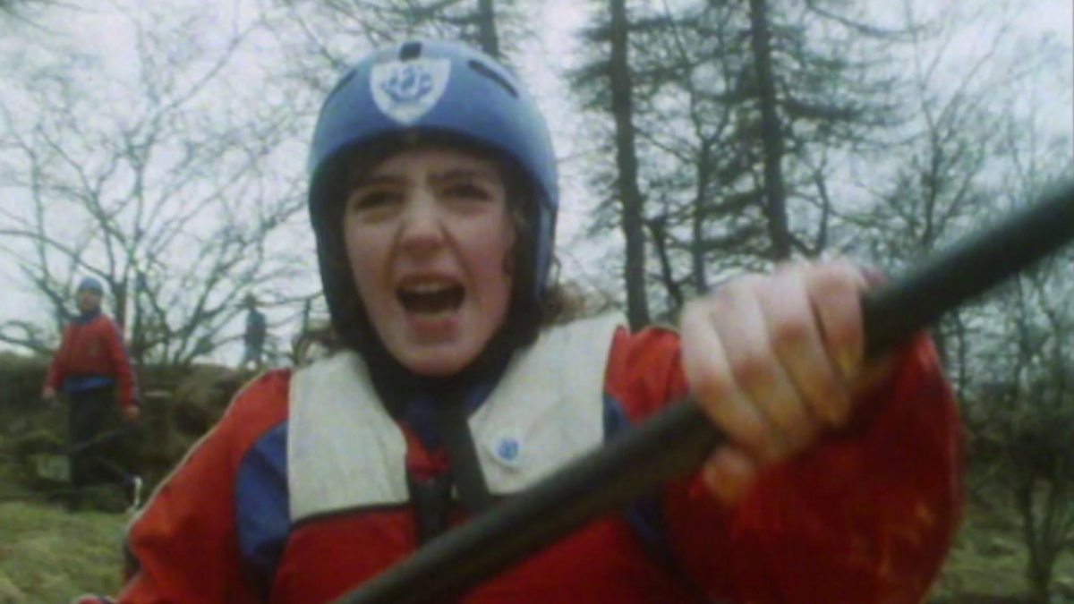 Blue Peter presenter Yvette Fielding tackles some rapids on a river in Bala.