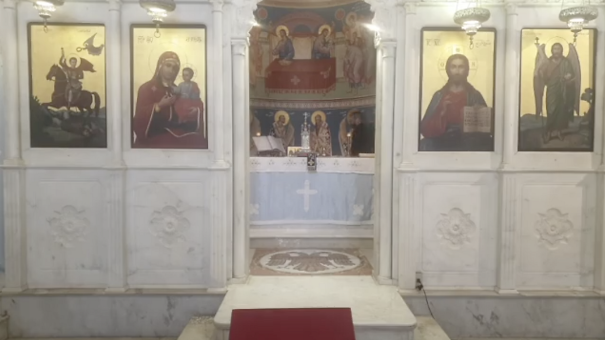 Father Youil Nassif rushed to the church to check for damage, finding the nave completely ruined. But the sacred altar space, protected by the 'iconostasis' (wall of icons), left everything inside almost unscathed - including an oil lamp that had remained lit throughout the blast.