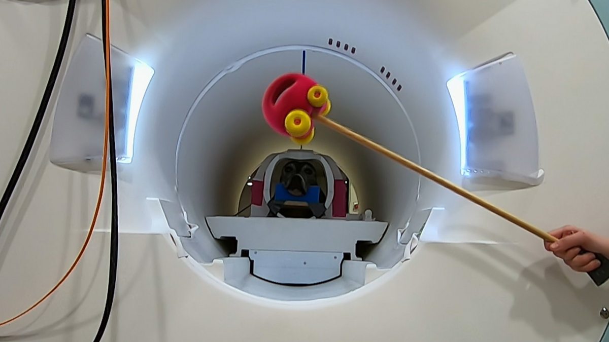 Gregory Berns from Emory University demonstrates through an MRI scan, that when a dog is expecting praise their dopamine levels go higher than when expecting food.