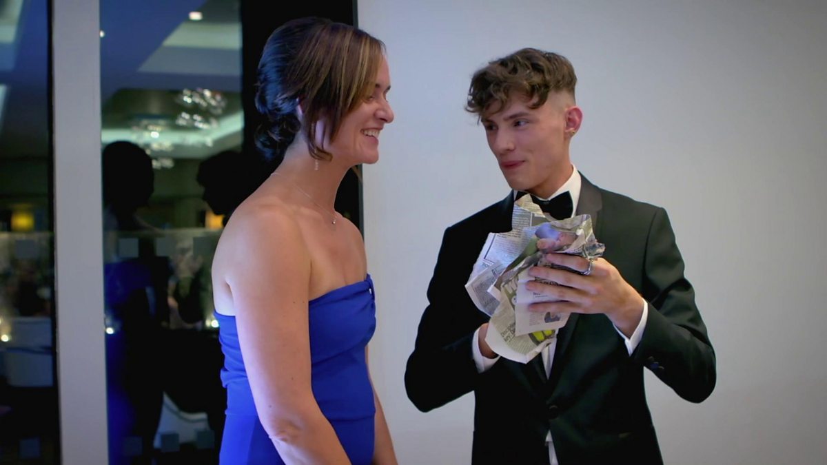 Joel M has a surprise for one of the teachers Our Lady of Lourdes High School Formal.