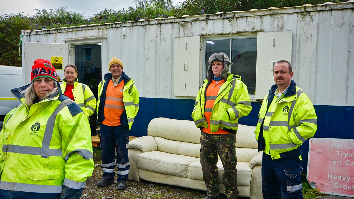 Cyfres gomedi newydd wedi ei lleoli mewn canolfan ailgylchu yn y gogledd. New comedy series set in a recycling centre in north Wales.