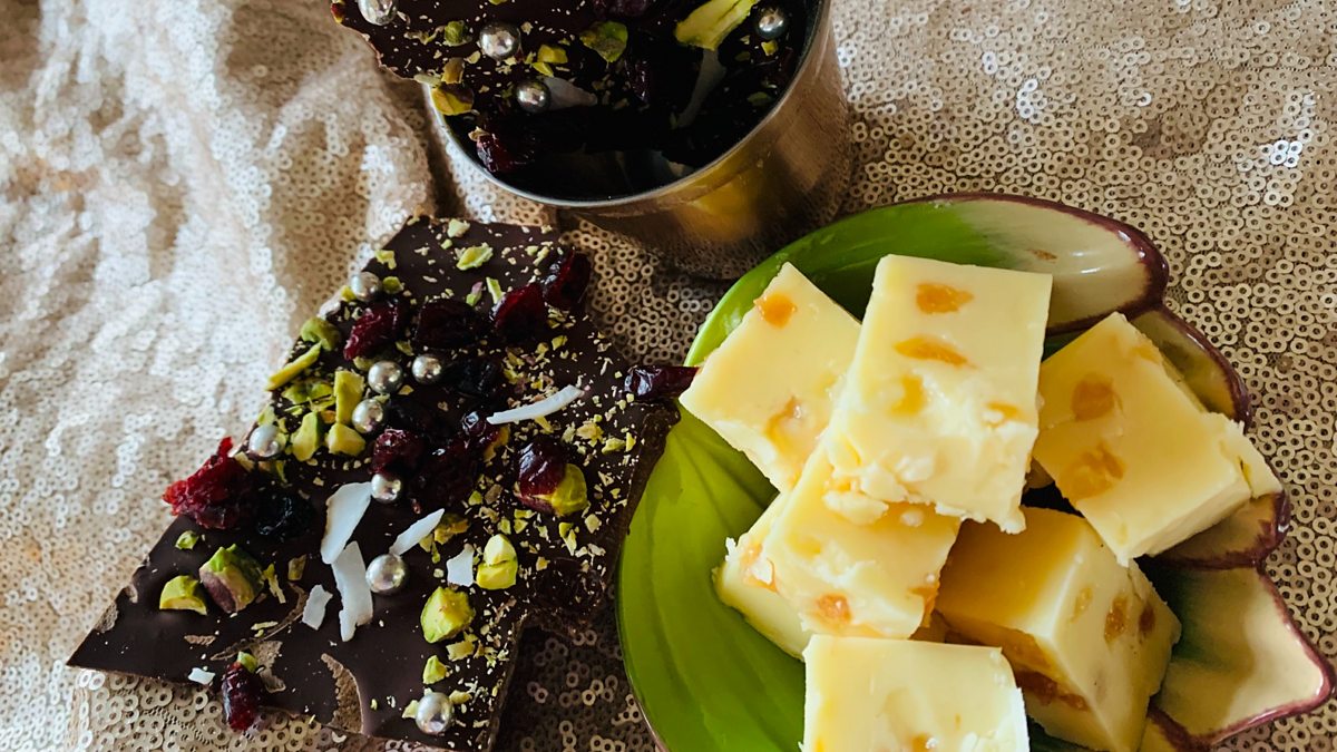 White Chocolate and Ginger Fudge & Festive Chocolate Bark