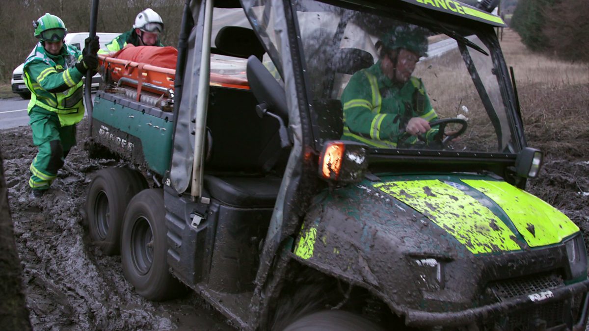 The team are challenged by difficult conditions as they attempt to reach a patient.