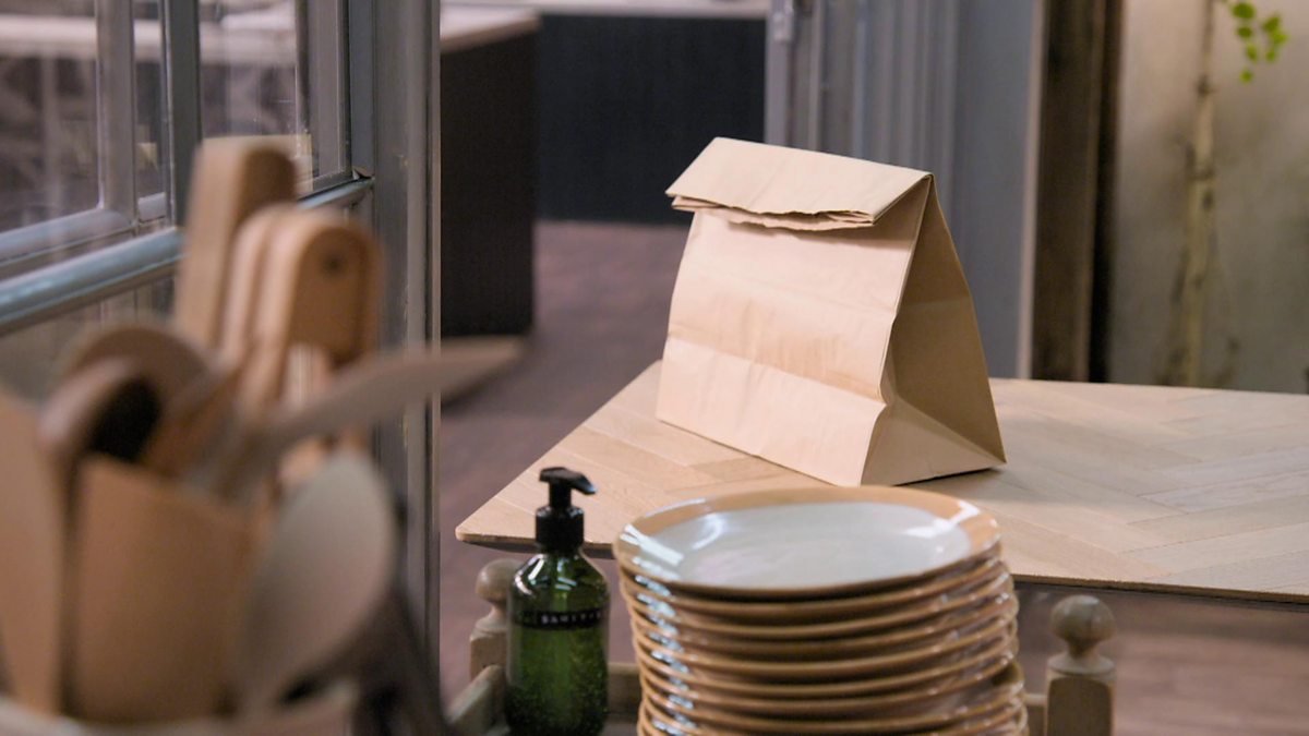 It's Rustle Up day, and the cooks are pleased to discover that Chris seems to have left his brown paper bag in the kitchen. Surely, there's no harm in taking a sneak peak inside?