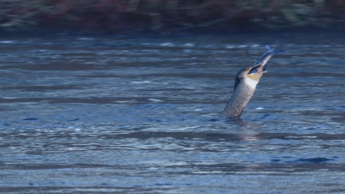 Greedy cormorant eats a salmon whole!