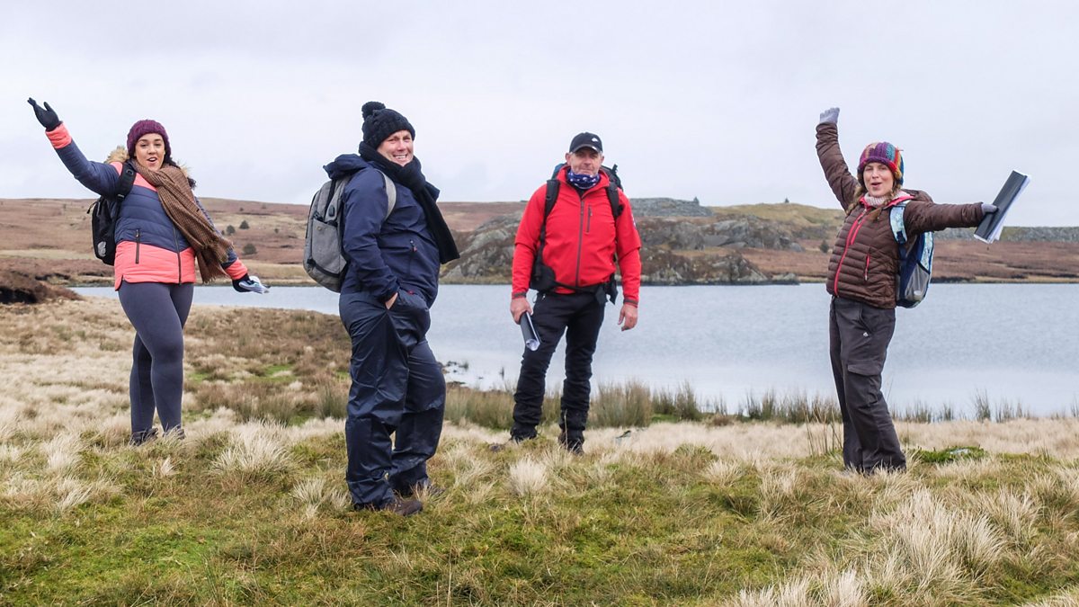 Y tro hwn: teithiau rownd Cwm Idwal, Bethesda; Blaenau Ffestiniog; Bwlch Nant yr Arian, Ceredigion; a'r llwybr arfordirol ger y Barri. This week, Catrin, Kevin, Melanie and Mark compete.