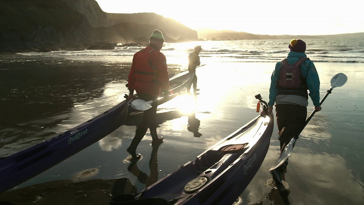 Derek the Weather braves choppy seas for a kayaking lesson in North Pembrokeshire … and almost gets away with it.
