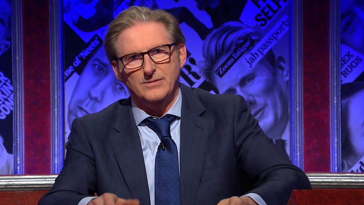 Katherine Ryan explains why she's suspicious of good news from the government, while first time host, Line of Duty's Adrian Dunbar goes Ted Hastings on guest Tim Shipman.