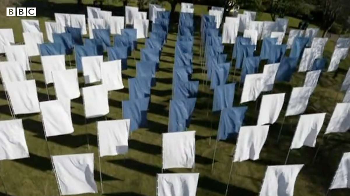 One hundred and 20 hospital bed sheets have been installed on flagpoles in Birmingham's Aston Park. The artwork, In Memoriam, is to honour the sacrifice of NHS staff and remember those who have died during the pandemic.
