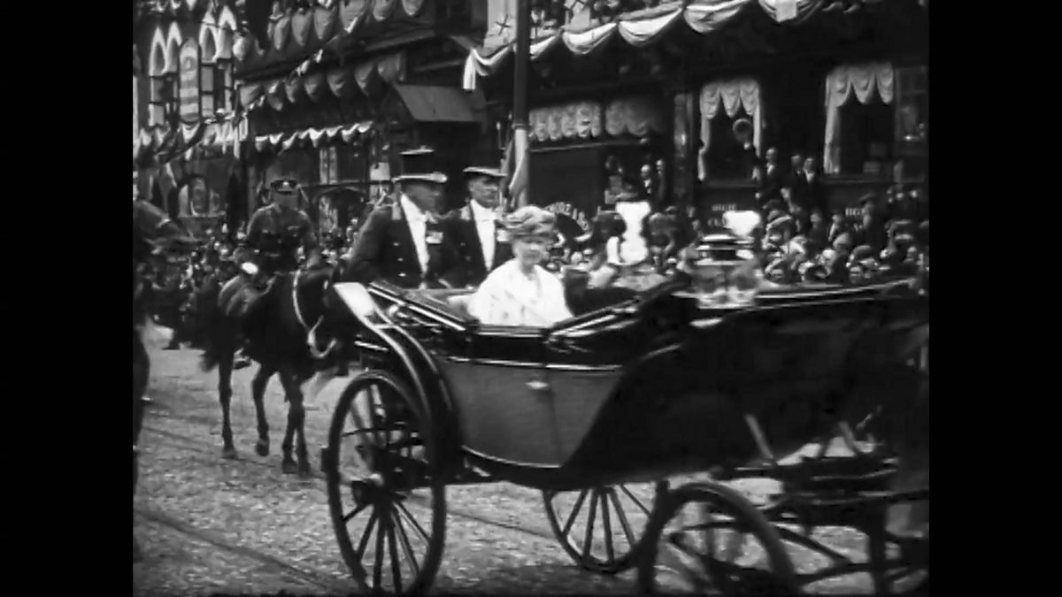 King George V and Queen Mary arrive in Belfast for the official state opening of the Northern Ireland parliament.