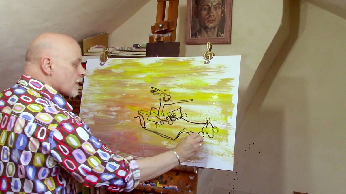 Artist James Mayhew paints and illustrates inspired by BBC NOW conducted by Ryan Bancroft
