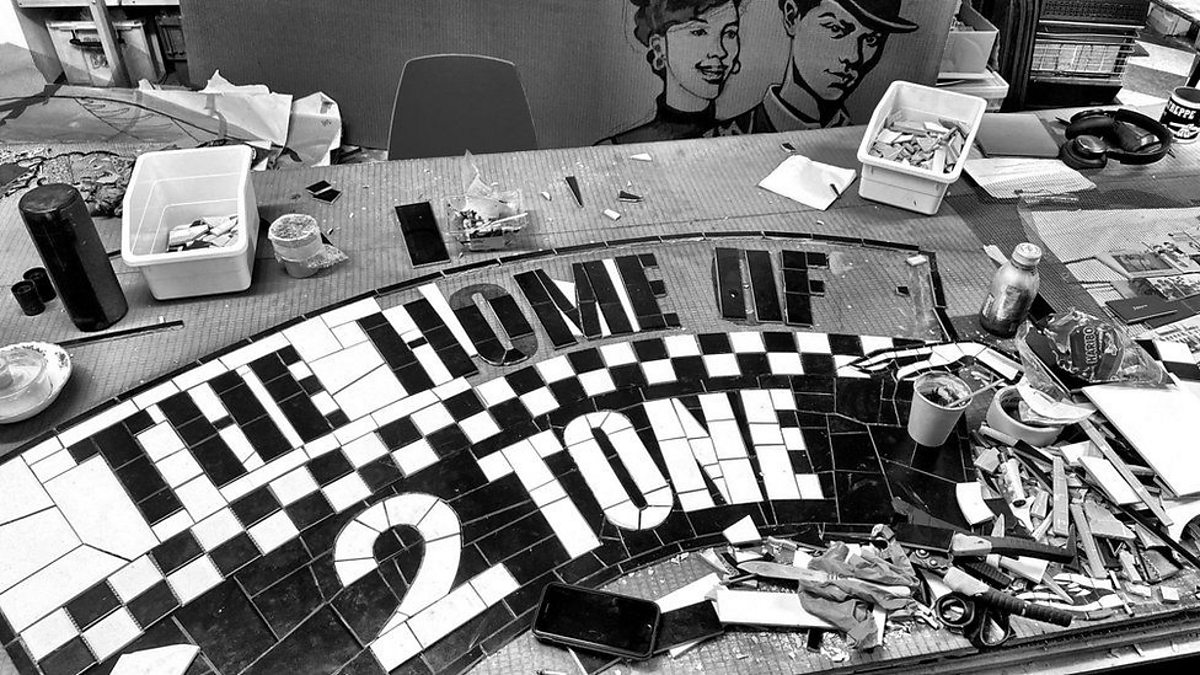 Artist Carrie Reichardt has created a giant 2 Tone mosaic on Pool Meadow Bus Station.