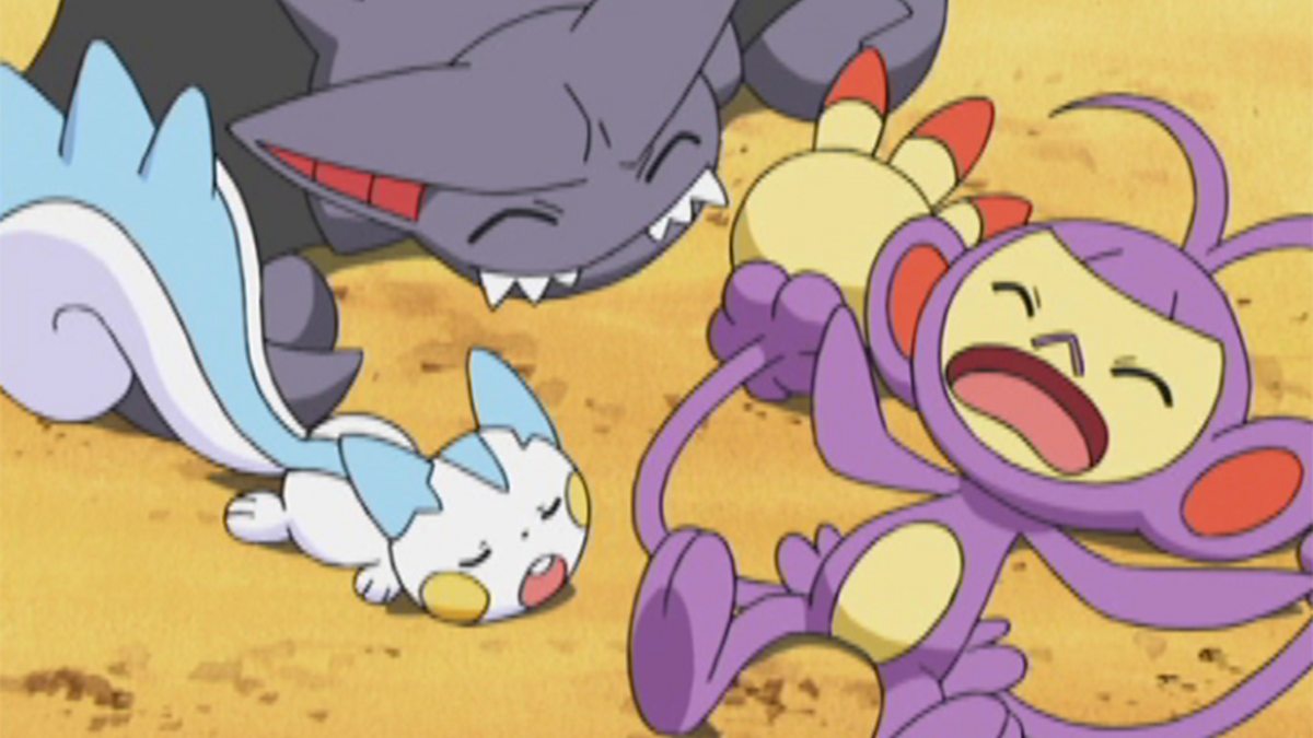 As Ash is training for his rematch with Fantina at the Hearthome Gym, his rival Paul interrupts him for a battle! It’s Ash’s Turtwig versus Paul’s Honchkrow, while the rest of their Pokémon watch.