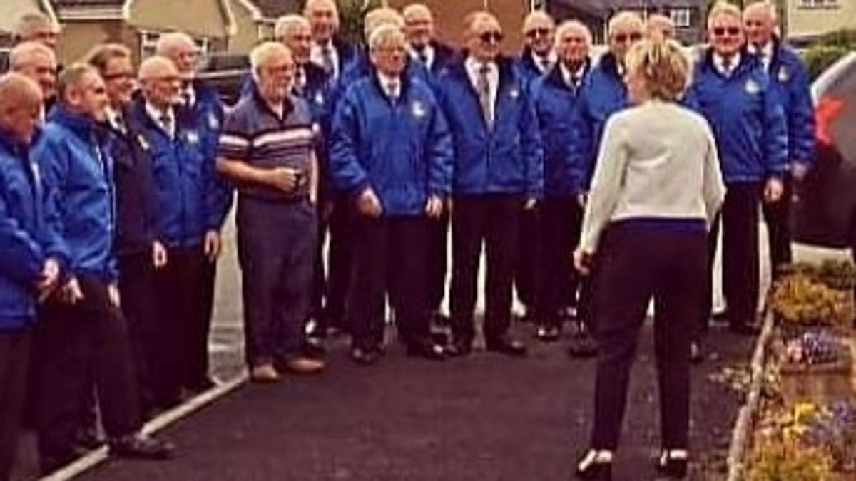 Dot Connell yn cadw trefn ar Gôr Meibion y Bari