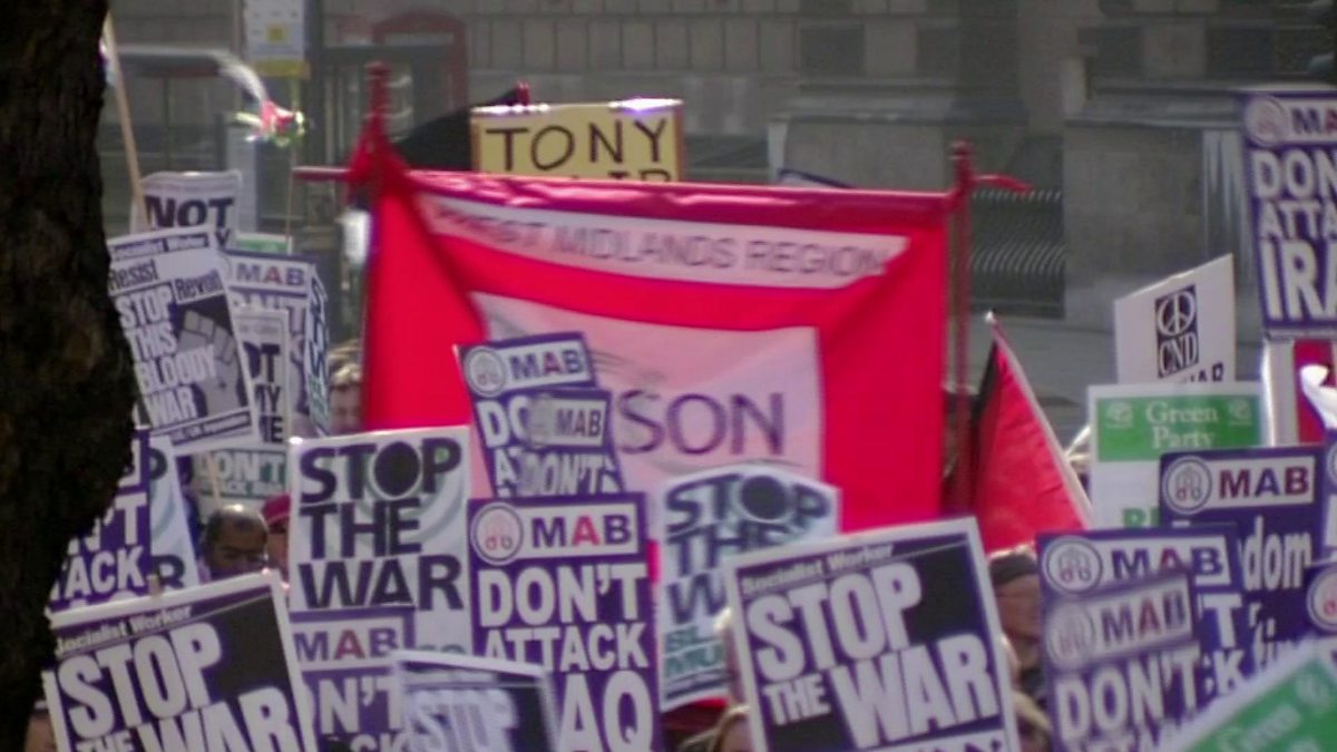 In February 2003, over one million people join anti-war protest marches across the UK.