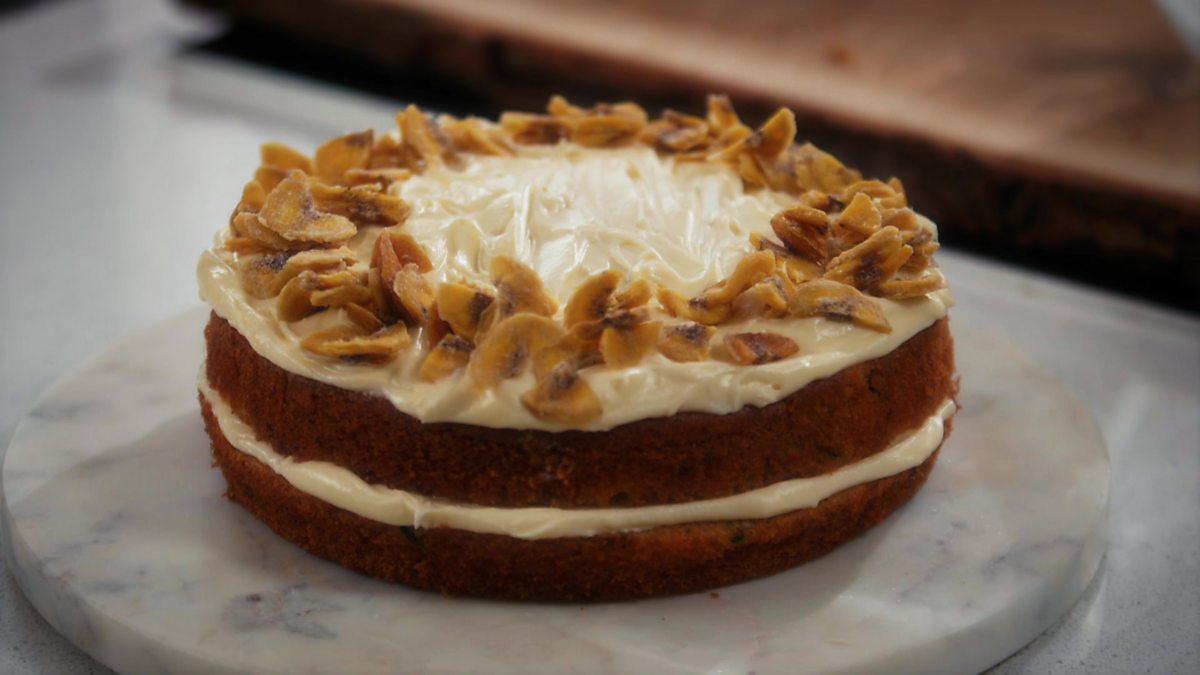 Mary Berry cook's up a delicious Sunshine Cake, which is packed full of wonderful fruit and vegetables and topped with a tempting cream cheese icing.