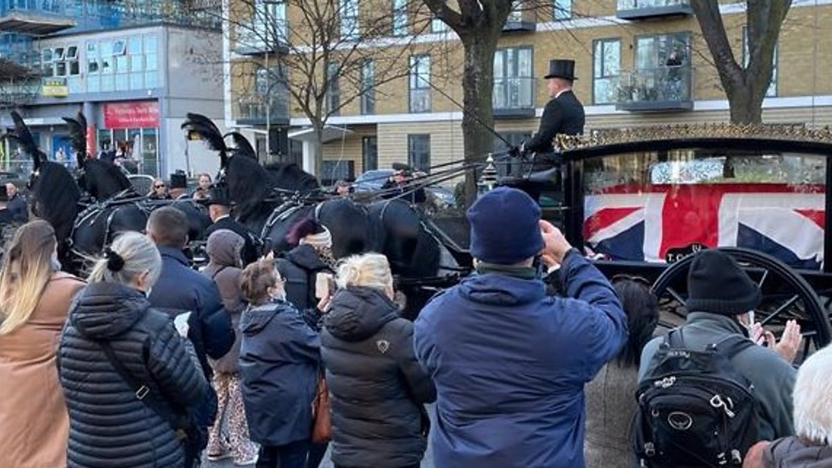 Crowds clapped and then fell silent as the horse-drawn hearse paused outside his constituency office in Leigh Road before heading to the chapel of rest, ahead of Sir David's funeral at Westminster Cathedral.