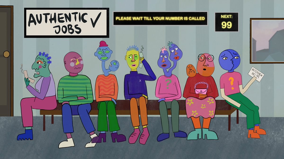 An abstract world where authenticity is the social currency. We follow our protagonist on a journey to the job centre, numbed by the burden of having to being their most authentic self, and watch as their world descends into chaos. An animation that embraces a visual blend of 70’s colours in an urban aesthetic, creating a surreal, sarcastic and dreamlike dystopia. Authentic Sardines explores feelings of disassociation many young people feel under current social pressures; that ‘authenticity’ is a privilege that people struggle to access.