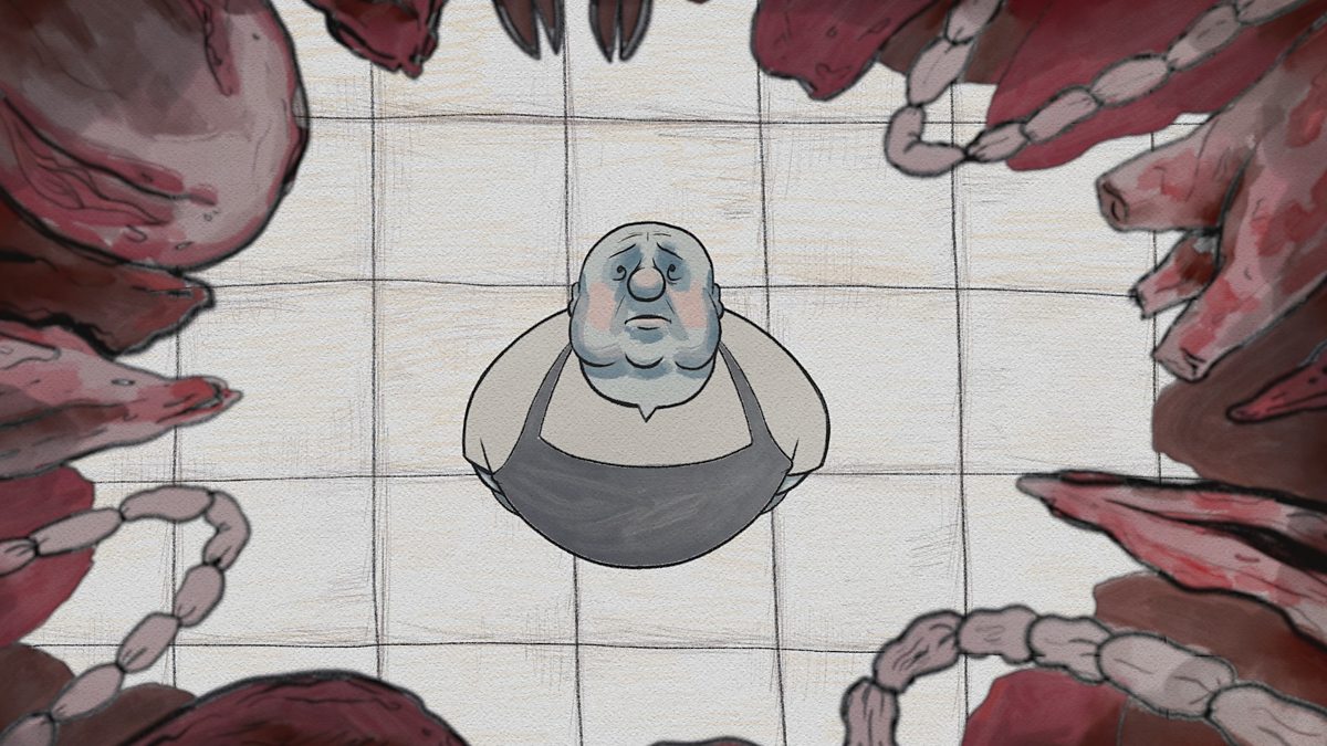 Unflinching narration and lurid, visceral animation guide us through the day in the life of a Butcher on the edge. The film comprises the narration of an obsessive fantasist, who delves endlessly into the butcher's life in an effort to understand his seemingly unfathomable closing time.