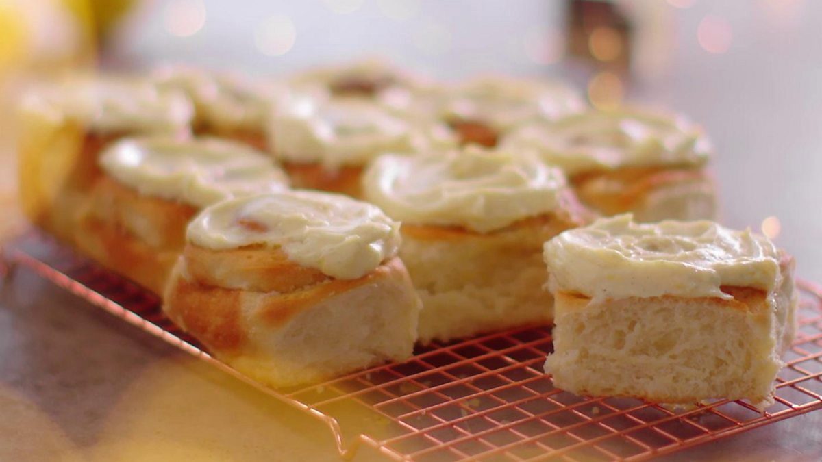 Nadiya presents her spectacular lemon drizzle swirls. A twist on the cinnamon bun, these fluffy lemon and cardamom-scented creations are topped with a pillowy citrus frosting.
