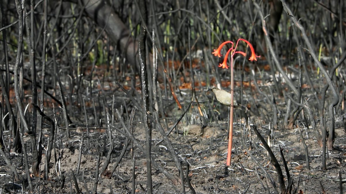 In the ashes of a fire in South Africa's Fynbos region, the fire lily blooms after 15 years of dormancy.