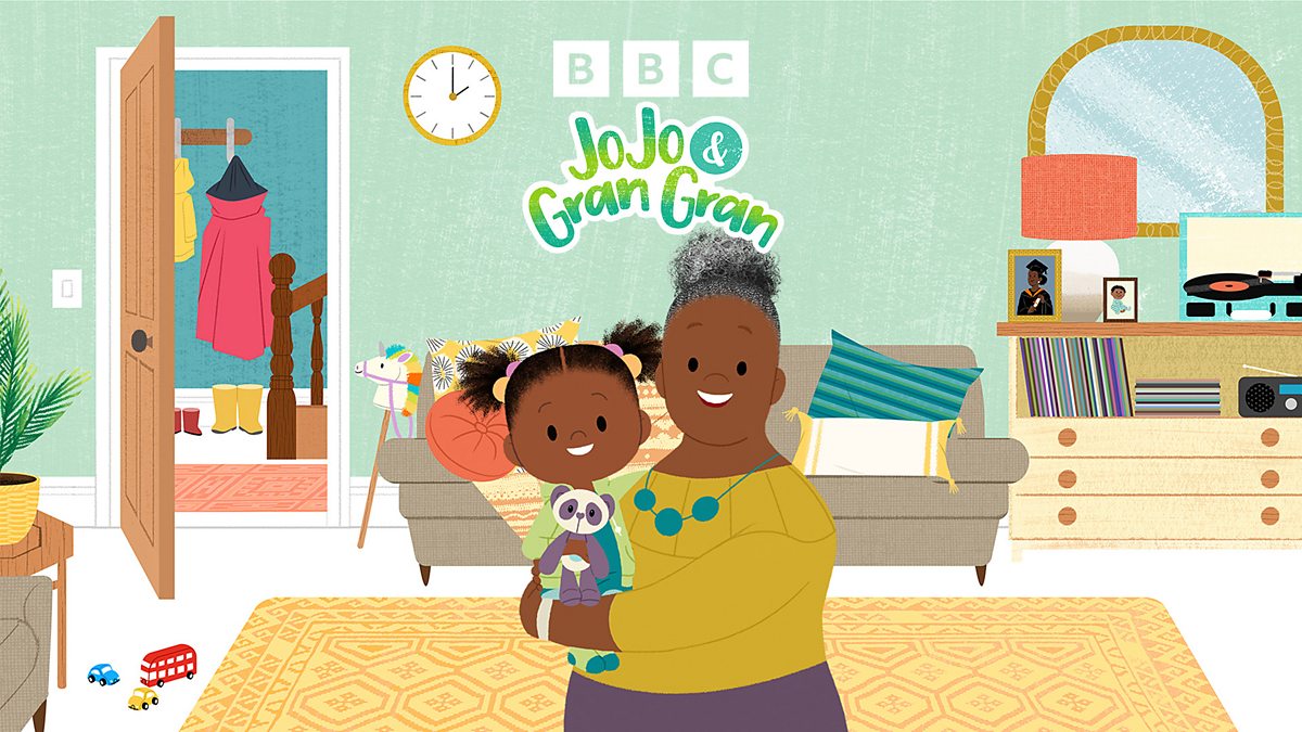JoJo and Gran Gran are heading to Jared’s shop with a special picture JoJo has painted to remember her favourite Panda T-shirt that’s now full of holes. Jared is busy moving boxes of old clothes to take to the charity shop, when JoJo spots Jared’s favourite t-shirt that has shrunk in the wash. But instead of taking it to the recycling centre Gran Gran has a Gran Gran plan to make a memory quilt from their old clothes that are too mis-shaped, faded or torn to wear. So they can remember special moments and wrap themselves in lovely memories.