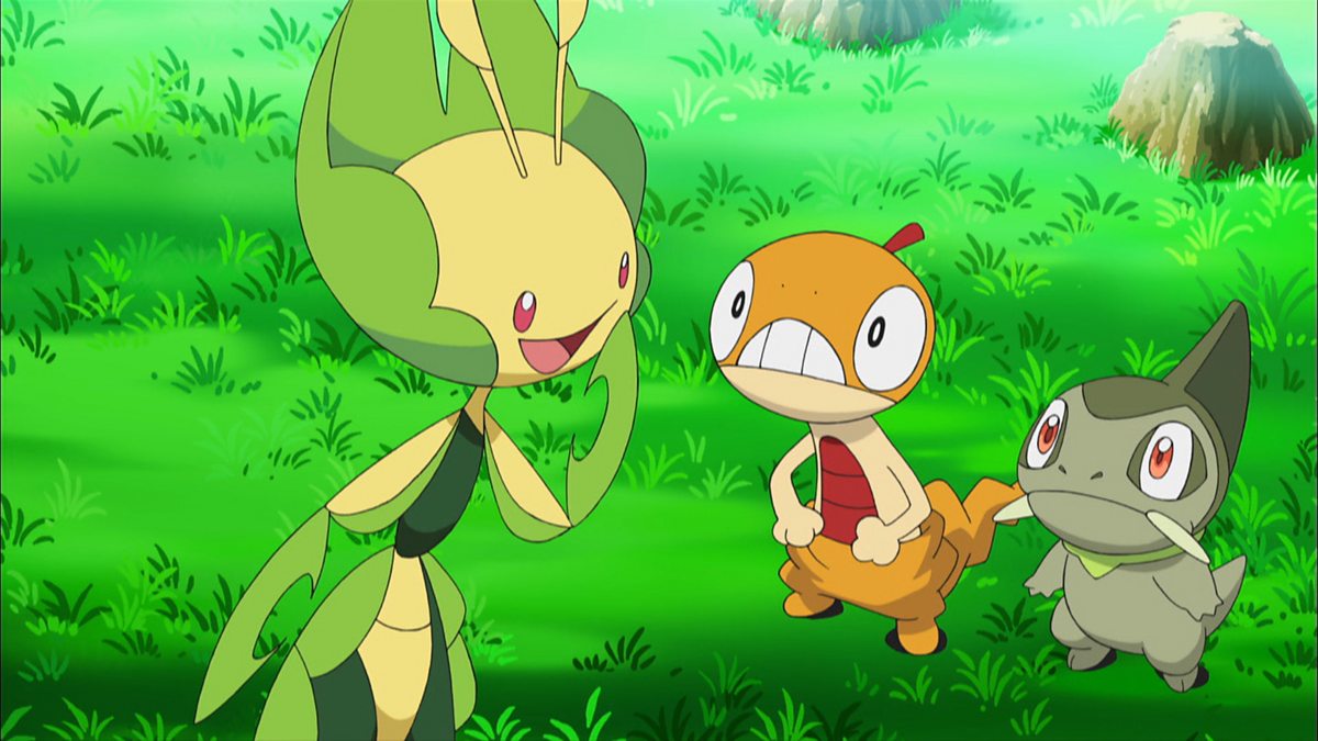 On their way to Icirrus City and Ash’s next Gym Battle, Ash and Iris are doing some training with Ash’s Sewaddle and Iris’ Emolga. The attacks are fast and furious, when suddenly Sewaddle evolves into Leavanny!