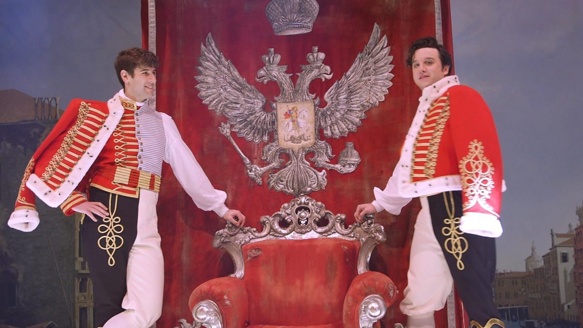 Take a tour of the set of The Gondoliers at Festival Theatre, Edinburgh. Steered by the two Gondoliers Marco and Giuseppe.