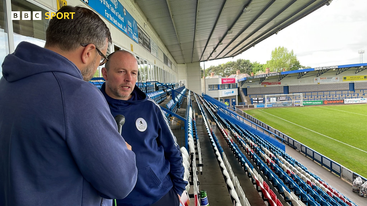 A relieved Paul Carden speaks with Nick Southall following 1-1 draw with York.