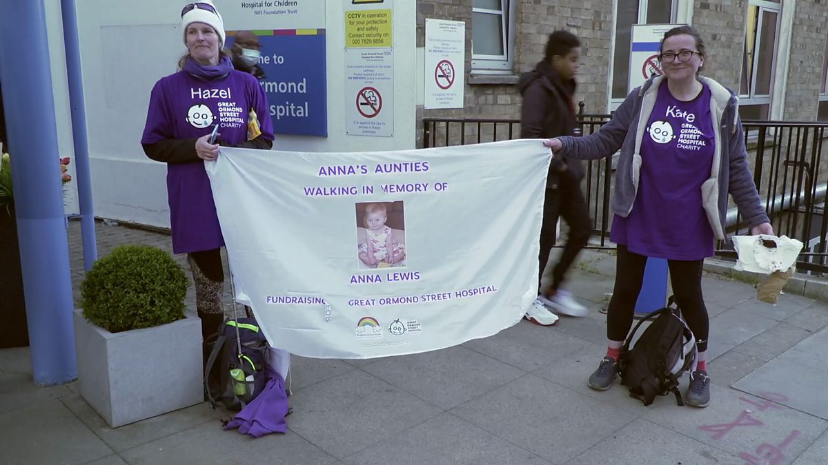 JB Gill joins Jess Lewis and her university friends on a 22 mile long walk from Kent to Great Ormond Street, in memory of her daughter Anna who lost her life to a rare disease.