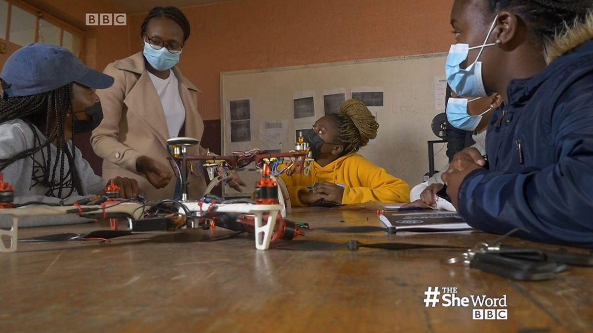 Aeronautical engineer Lindokhule Tshuma teaching young girls how to build drones