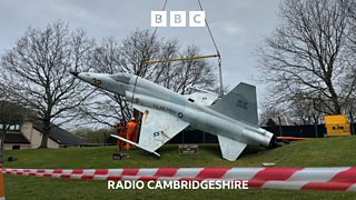 The fighter jet outside RAF Alconbury has been moved after more than 40 years.