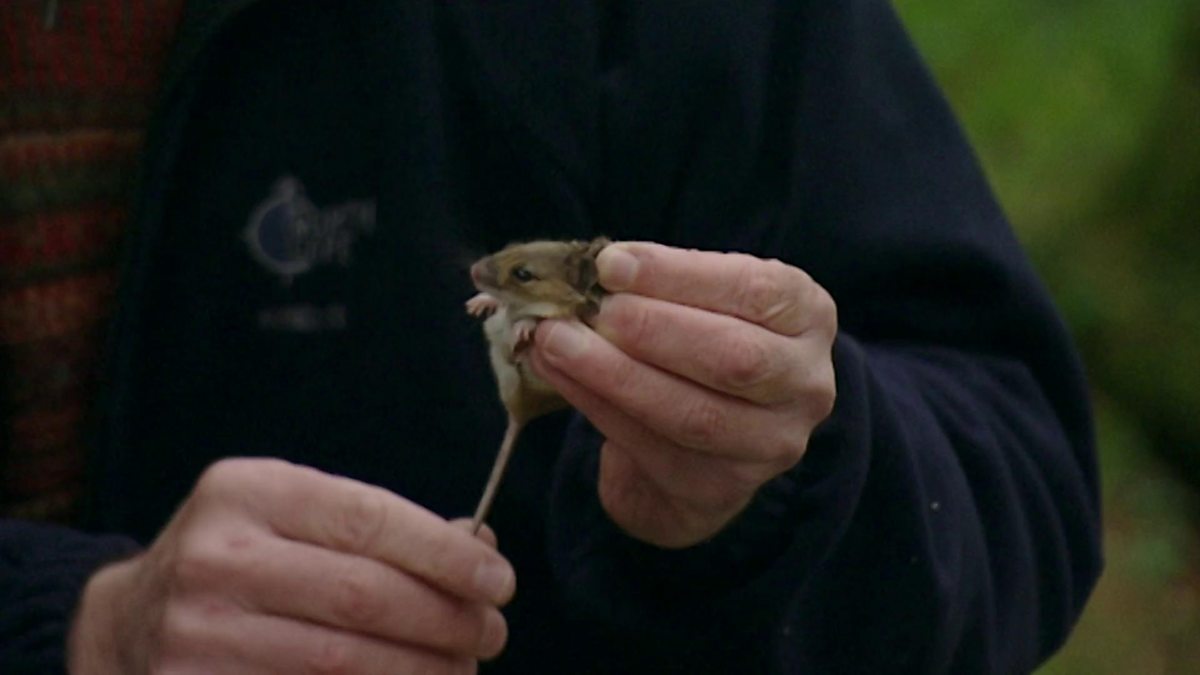 Iolo discovers a wood mouse caught in a longworth trap.