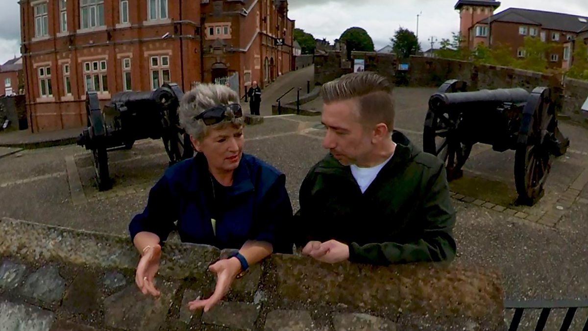 Stephen McCauley takes Anne Marie McAleese on a walk around the city walls in Derry.