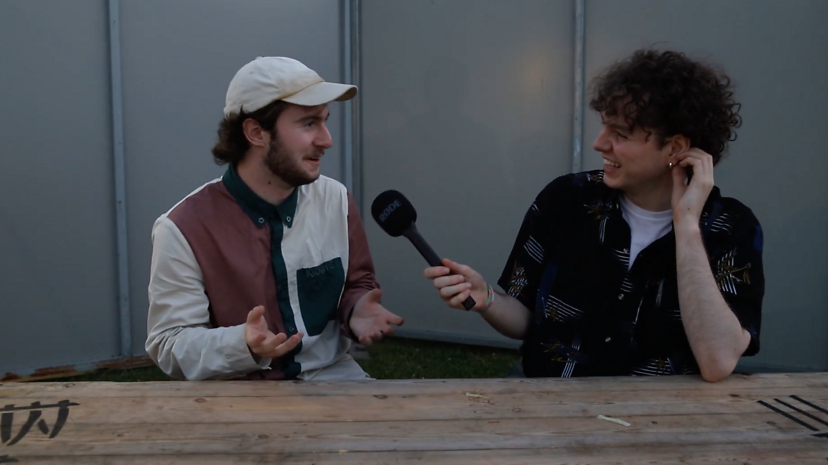 A beaming Dan from Air Circus chats to Alex West after their set at Readipop Festival