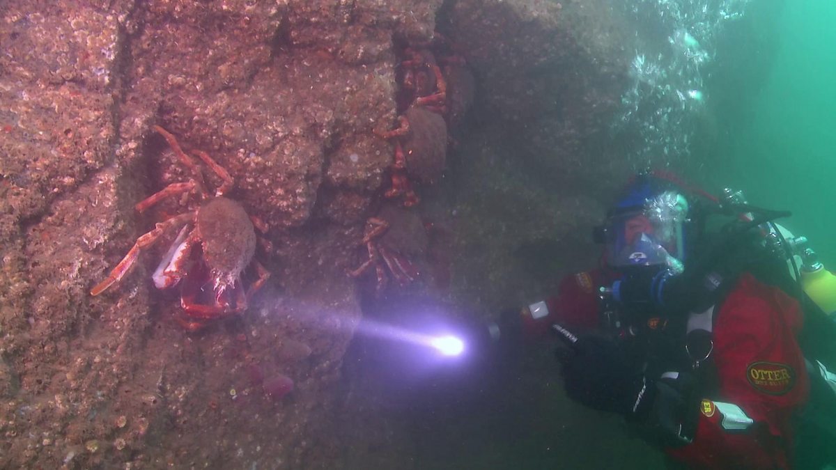 Iolo discovers some of the underwater wonders of the Pembrokeshire coast including a congregation of giant spider crabs, a huge sea cucumber and fantastic coral fans.