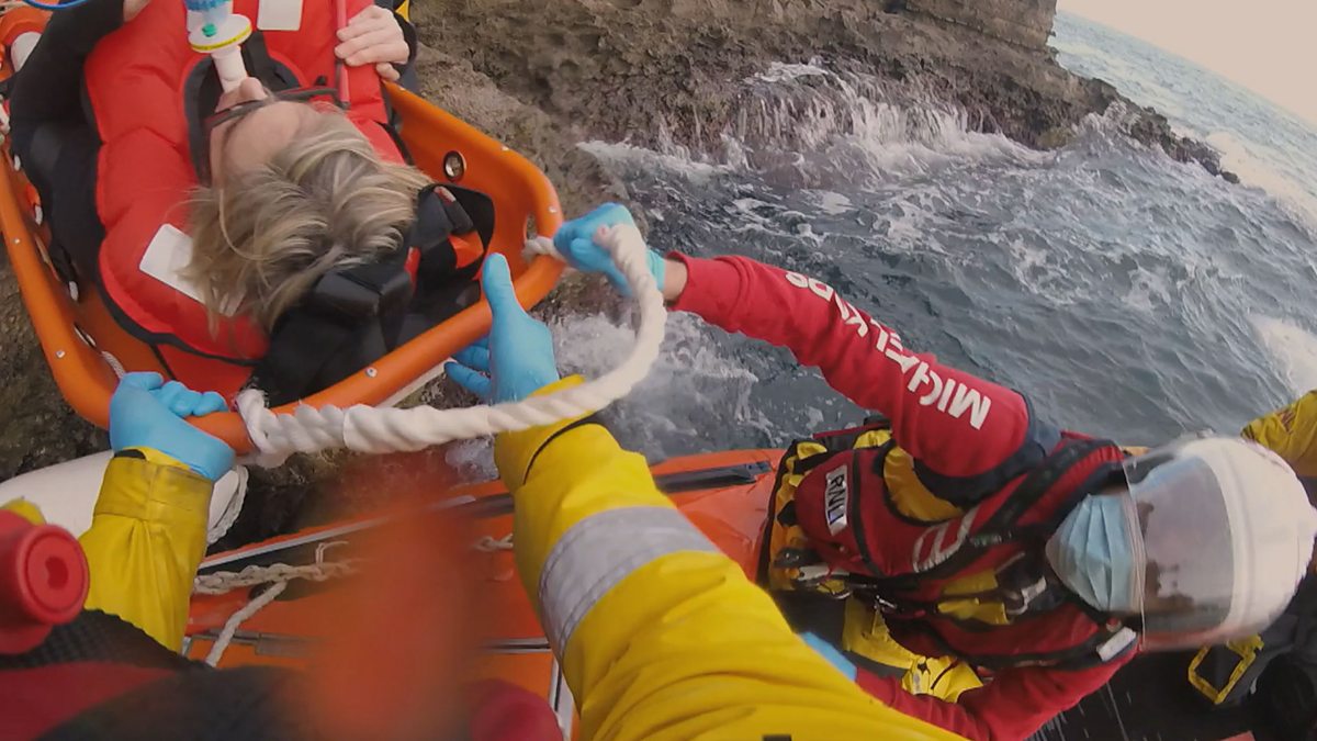In Swanage, the lifeboat crew work hand-in-hand with the specialist coastguard rope team to help an injured climber.