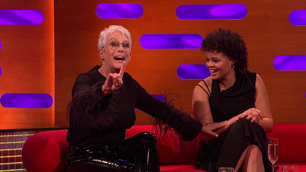 Jamie Lee Curtis jokes how she watched the latest Halloween film alone in a cinema - except for a squeamish security guard who made sure she didn't pirate a copy.
