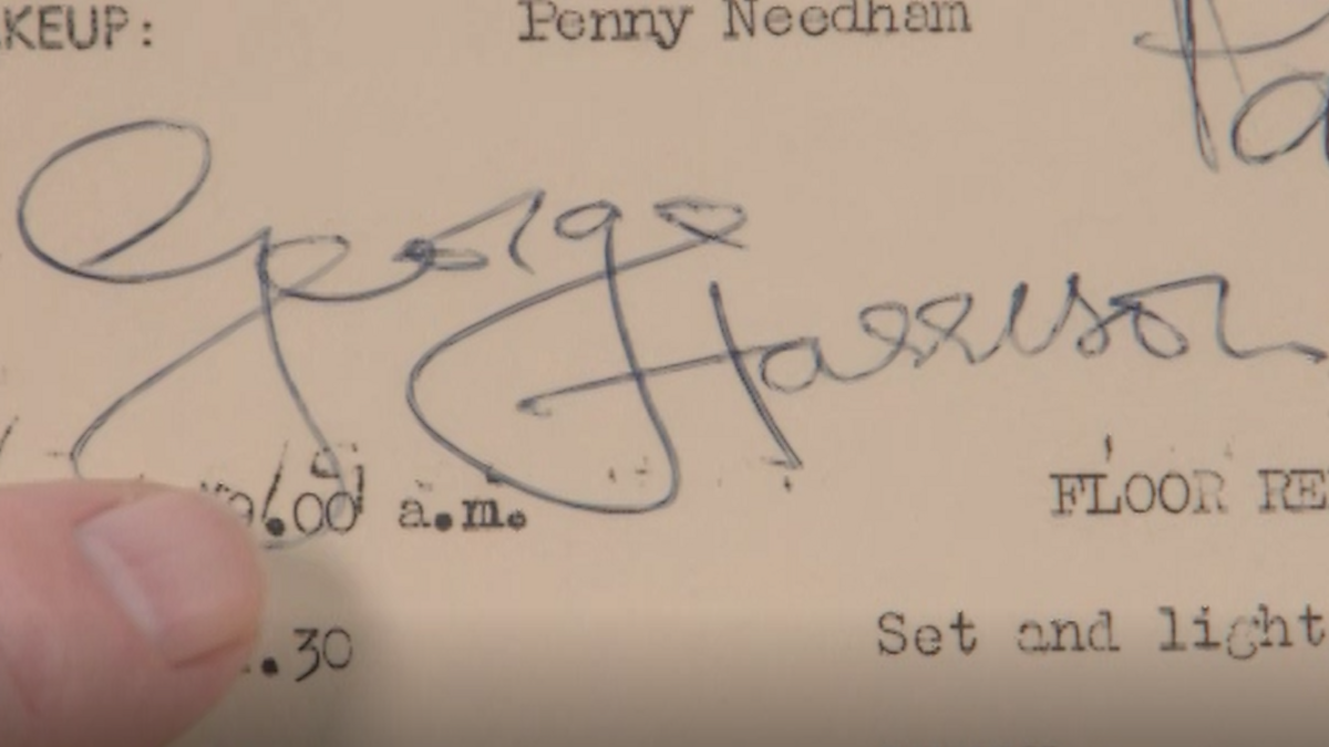 A former BBC makeup artist shows powder-puffs she used on The Beatles on Top of the Pops.