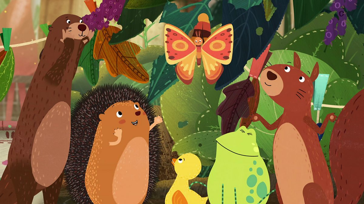 Mae Og a'i ffrindiau'n teimlo'n gyffrous iawn wrth ddisgwyl i lindysen droi'n bili pala. Og and his friends feel very excited waiting for a caterpillar to turn into a butterfly.