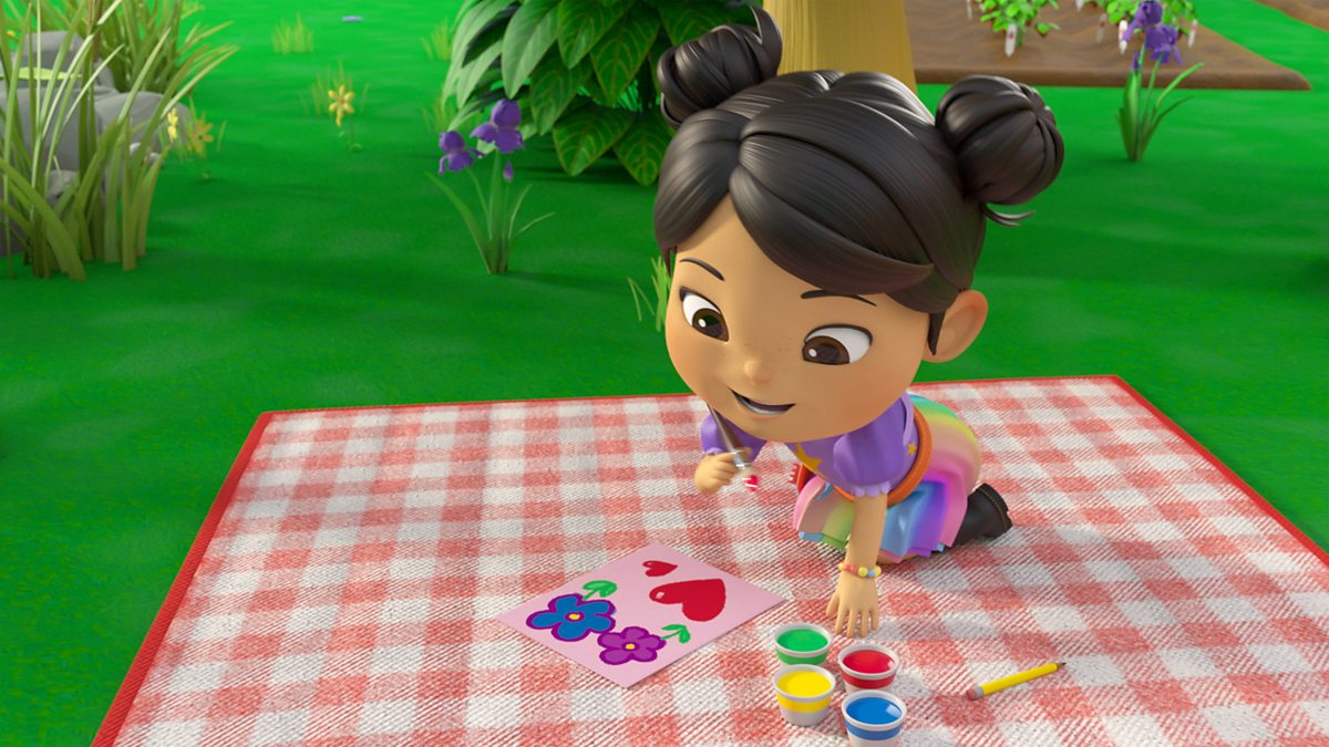 Ella makes a Mother’s Day card. Rishi’s mum teaches yoga at the farm.