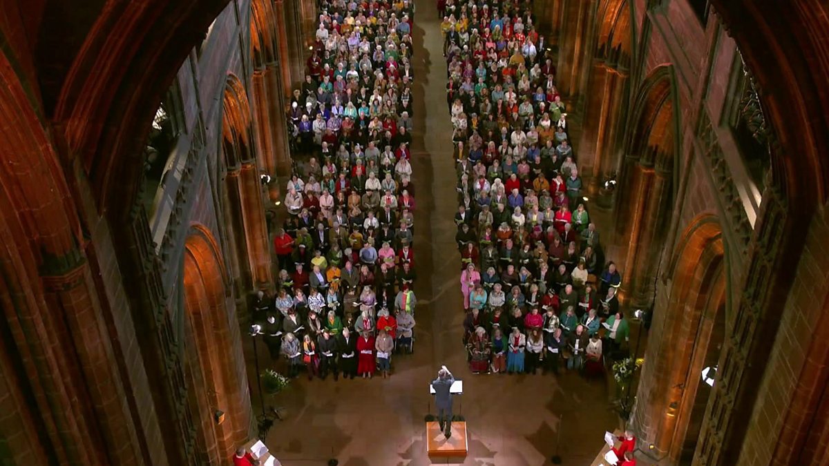 To celebrate the feast day of St George, the congregation of Chester Cathedral sings 'For All The Saints'.