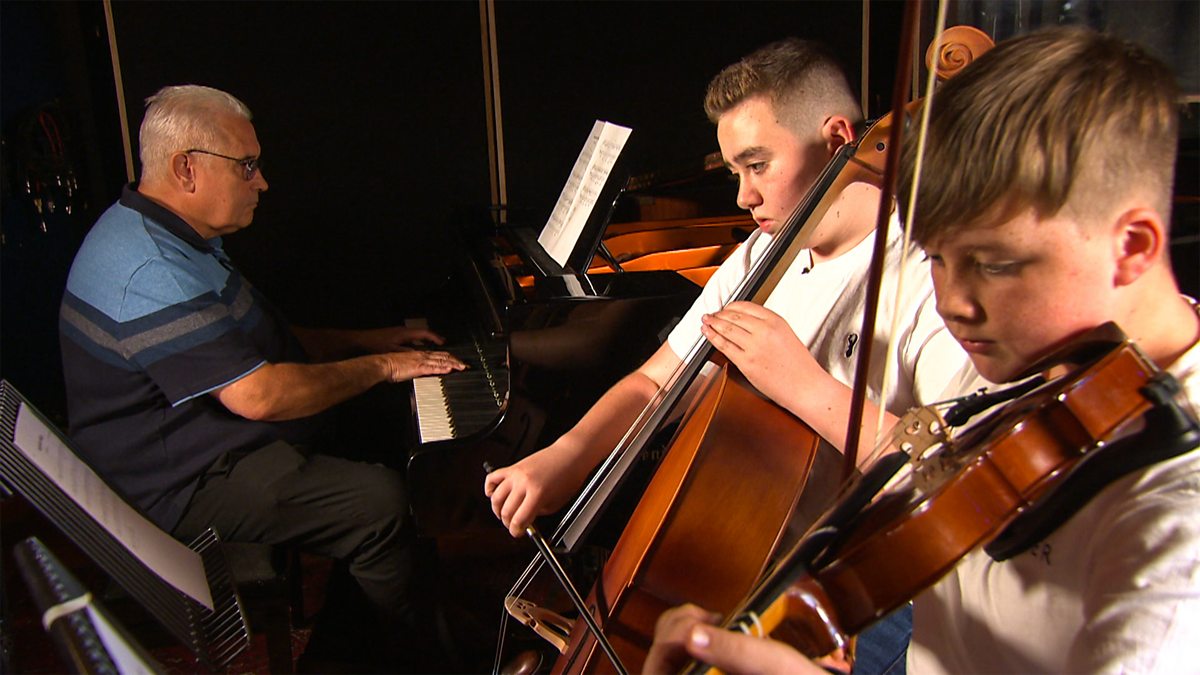 In London, Fionn and Noah play cello and viola with a composer cousin they’ve never met and find out about their family links to The Sound of Music and Frank Sinatra.