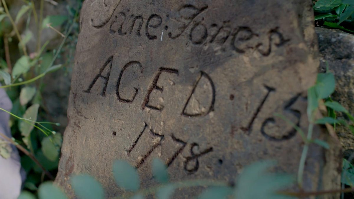 Sian Eleri searches for the missing gravestone that once stood outside Penyffordd Farm.