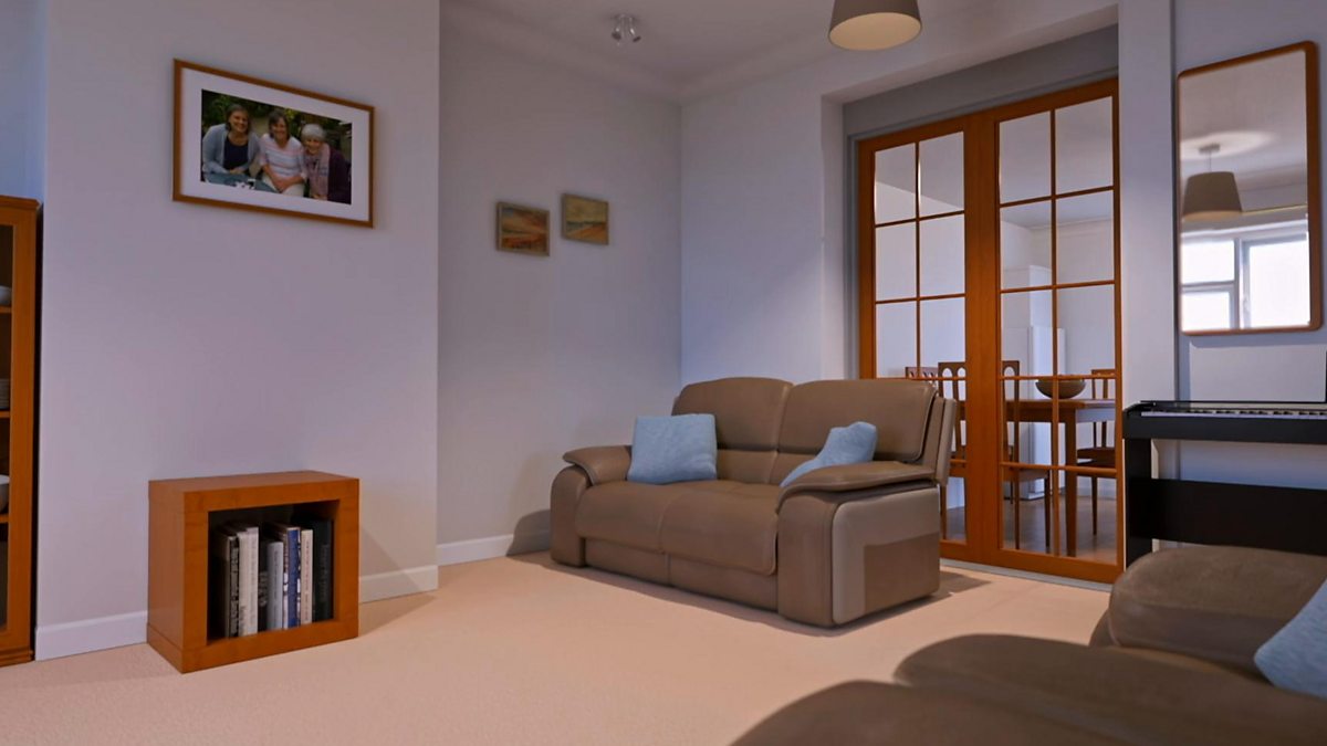 Architect Lindsay lays out the existing problem with the lounge, before it's fully stripped back in preparation for her VR transformation.