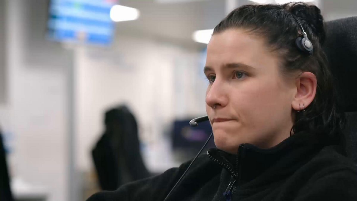 Call handler Molly, comforts an elderly patient who has called for help following a fall. Due to severe delays, the patient must wait up to four hours for an ambulance.