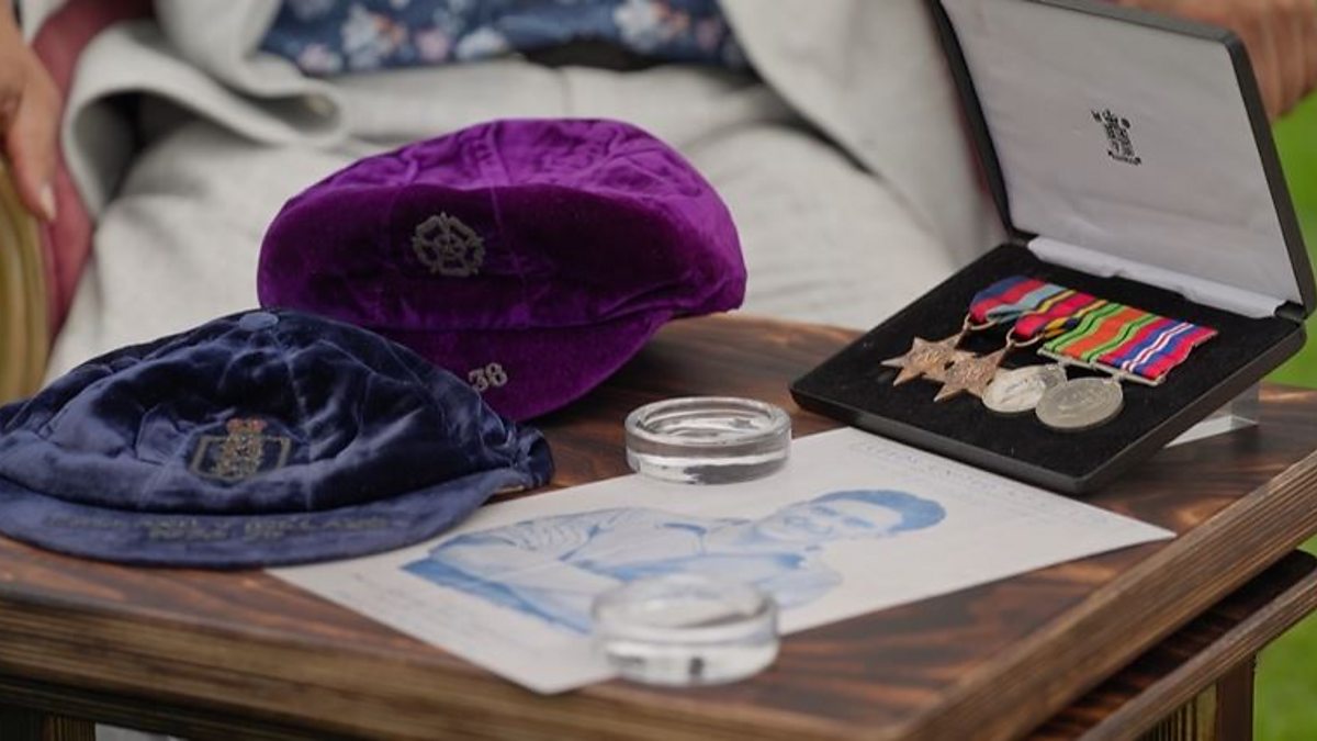 Raj Bisram looks through items from the life of Leeds United footballer Joseph Stephenson