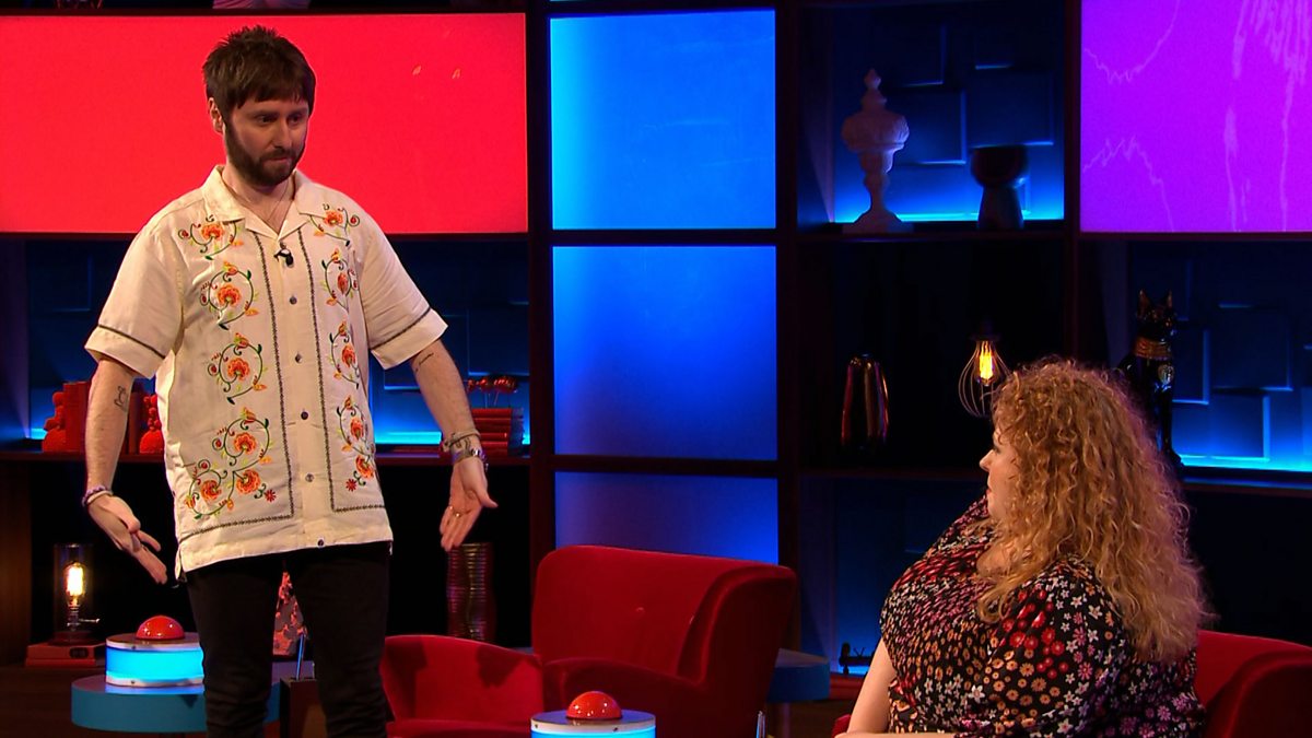 James Buckley, one of Britain's finest comedy actors, must mime the title of a show to Amy Gledhill.